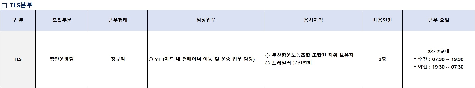 | 제목 | 항만운영팀 YT 정규직 채용(~3/11) |